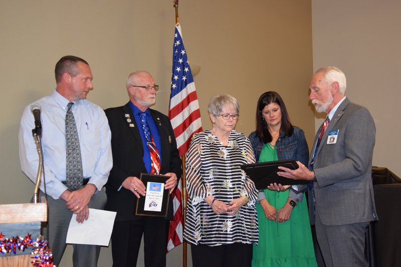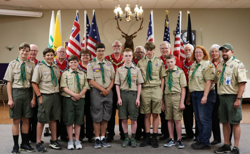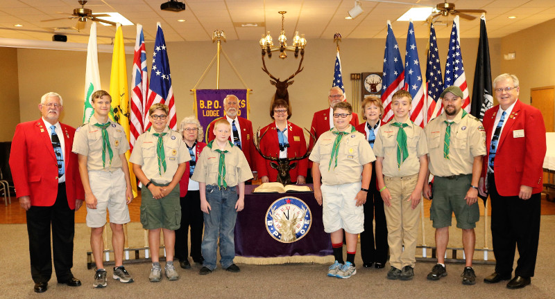 Instead of the traditional Flay Day recognition on June 14th by the Elks, our lodge room had been rented out that evening in advance. Exalted Ruler Montag requested in writing to our District Deputy to the Grand Exalted Ruler, Nebraska East, Larry Bratt of this conflict and she requested that the ceremony be changed to Saturday, June 17th. DD Bratt granted her request and re-arrangements were put in place. Boy Scout Troop 159, led by Scoutmaster Mark Huenink, was contacted and his troop presented the colors throughout the program.