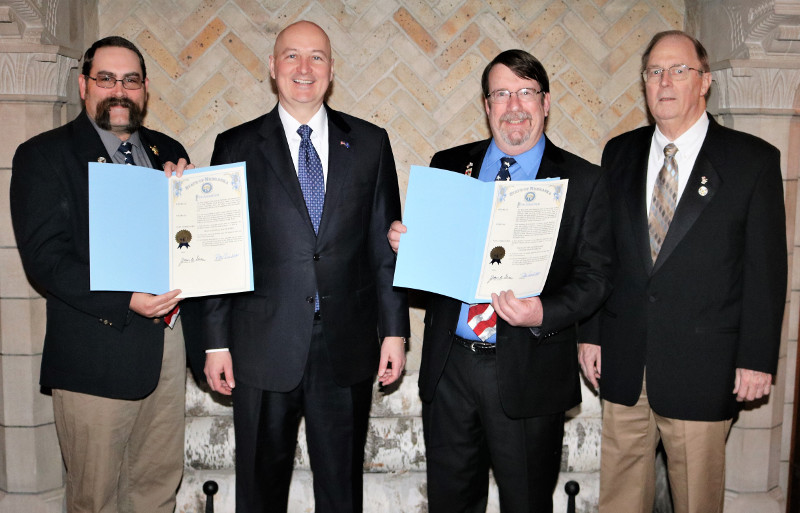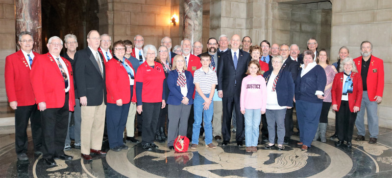 On Monday April 2nd, a group of Elks and friends gathered in the Nebraska State Capitol's Weary Room to witness the Governor signing two special proclamations. In this private ceremony, Governor Pete Rickets proclaimed the week of May 1st - 7th as Elks National Youth Week in tribute to our Junior Citizens, honoring them for their achievements and contributions to the life of the Community, State and Nation. In addition, our Governor proclaimed the weekend of April 27th - 29th, 2018 as Elks 150th Anniversary Celebration Weekend to pay tribute to our parent organization in celebrating the Elks milestone of 150 years of service during the Nebraska Elks Association Annual Convention. Accompanying our Governor, in the Capitol Rotunda, are Elks and friends from Fairbury, Grand Island, Hastings, Kearney, Lincoln, Norfolk, North Platte and Omaha. Photos by Public Relations Chairman, Stephen Wirth.