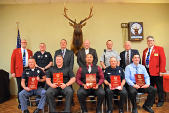 On May 5th, during First Responder Month, the lodge held a First Responder recognition dinner for our local First Responders. There were 89 people that attended and enjoyed a great steak dinner with baked potatoes, green beans, rolls, salad and red velvet cake for dessert. Officer Joe Villamonte from the Lincoln Police Department, Deputy Barry Barnett from the Lancaster County Sheriff's Department, Trooper Rob Pelster from the Nebraska State Patrol, Officer Russell Johnson from the University of Nebraska Police Department and Firefighter Tod Sehnert of the Lincoln Fire and Rescue Department were all honored as being their departments Officer of the Year. A representative from each of their Departments talked about them, and then each was presented a plaque from our lodge. Representative of the departments were Assistant Chief Brian Jackson from Lincoln Police, Sheriff Terry Wagner from Lancaster Sheriff's, and Sgt. Mike Gummert from the Nebraska State Patrol, Chief Owen Yardley from the University of Nebraska Police Department and Capt. Bob Watton with the Lincoln Fire and Rescue Department. All the honorees and their families were very appreciative along with the department representative's. This was the second year our Lodge has recognized these fine Departments and their outstanding Officers. A special thanks to the Gustin, Norris and Holt families for sponsoring this dinner in the memory of our departed member Ray Norris. Thanks to all who helped and attended the dinner to show our appreciation to all these First Responders, their families and their Departments.