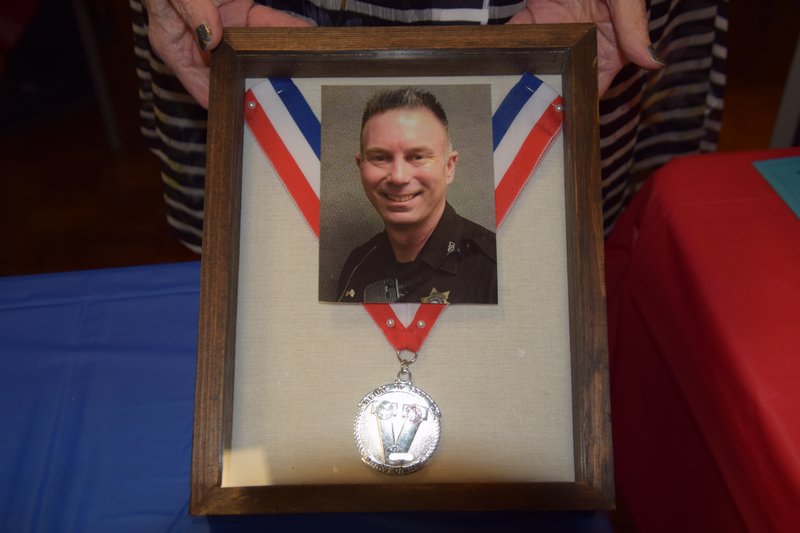 On May 8th, 2021 our lodge recognized First Responders in the area for their service to the community. They and their guests were treated to a Steak meal, and then were presented Certificates of Service and medals of Service to recognize what they have given to our community. The dinner was very well attended with over 80 people present. The entire dinner was sponsored by the Norris and Gustin families in memory of Ray Norris. The tables were beautifully decorated by Connie Moore, Phillip Hagan and Joni Hagan. Nebraska State Patrol Lieutenant Kalb Bruggeman introduced Trooper Jamieson Brown and spoke about why he was selected to receive this award. Assistant Chief Jason Stille with the Lincoln Police Department introduced Officer Josh Fullerton and explained why he had been selected. Chief Kendall Warnock of the Lincoln Fire and Rescue Department introduced Robert Poe and talked about the reasons they had chosen to honor him. Captain John Backer of the University of Nebraska Lincoln Police Department introduced Investigator Caleb Gose and spoke about him. Deputy Chief Ben Houchin from the Lancaster Sheriff's Department talked about their honoree Deputy Troy Bailey, who had passed away from a heart attack last fall and his Fiancé Danielle Zabawa and his mother Connie were present to receive his certificate and a shadow box with his picture and medal mounted inside. The program concluded with PDDGER Larry Bratt talked about fallen Lincoln Police Investigator Luis "Mario" Herrera who was killed in the line of duty. Mario's wife Carrie and their children, Carlos, Olivia, Adelina, Celia and Carlos's fiancé Tasha Bredvick were then presented a Certificate of Valor and a Shadow Box with Mario's picture and Medal of Valor mounted inside. This dinner is an annual event to show our support and appreciation to our First Responders in our community.
